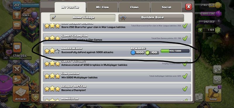 Unbreakable: Att framgångsrikt försvara din by tusentals gånger bevisar ditt arkitektoniska geni och ger dig ett enormt pris på 1 000 ädelstenar.