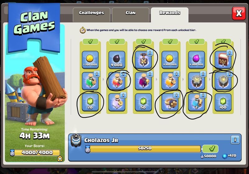 Clan Games är en månatlig festival med samarbetsutmaningar där varje medlems insats bidrar till ett differentierat belöningssystem. Genom att slutföra utmaningar, som att förstöra Archer Towers och använda specifika trupper, låser du och dina klankamrater upp nivåer av belöningar. Nästan alla Clan Games erbjuder ett urval av ädelstenar, ofta upp till 40 eller fler.