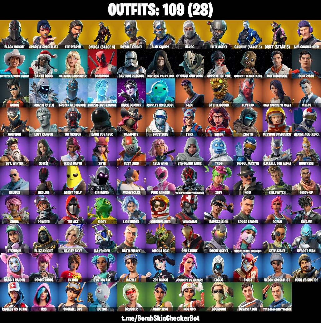 109 skins | Black Knight | Sparkle Specialist | The Reaper | Blue Squire | Royale Knight | Elite Agent | 1150 VB