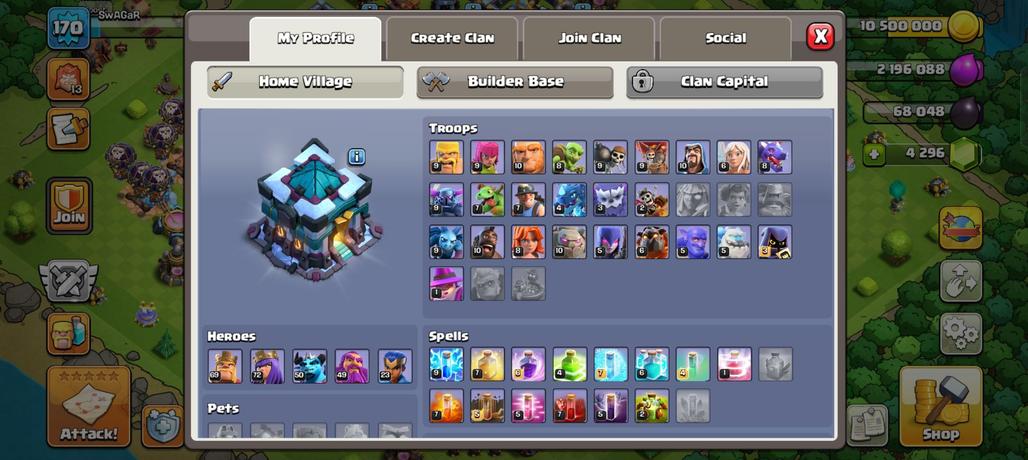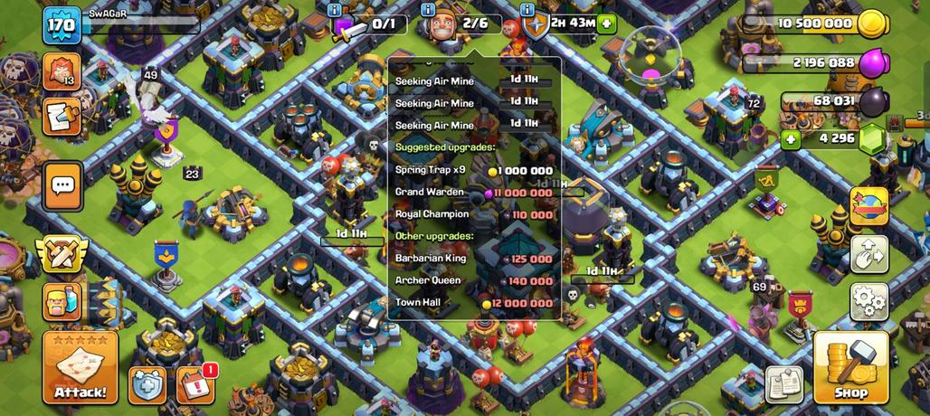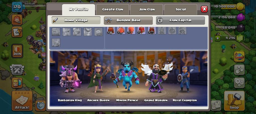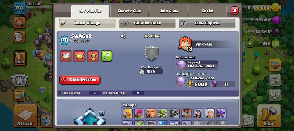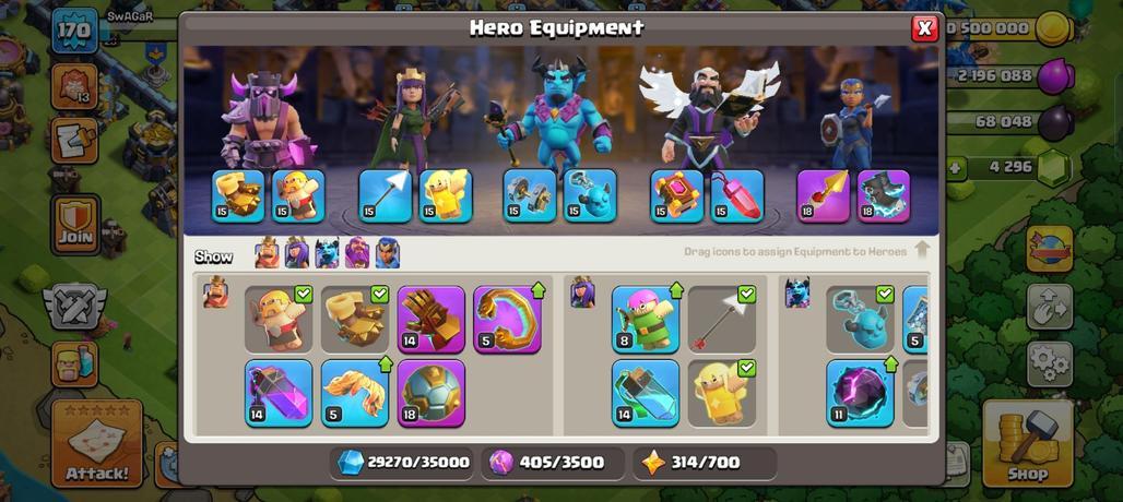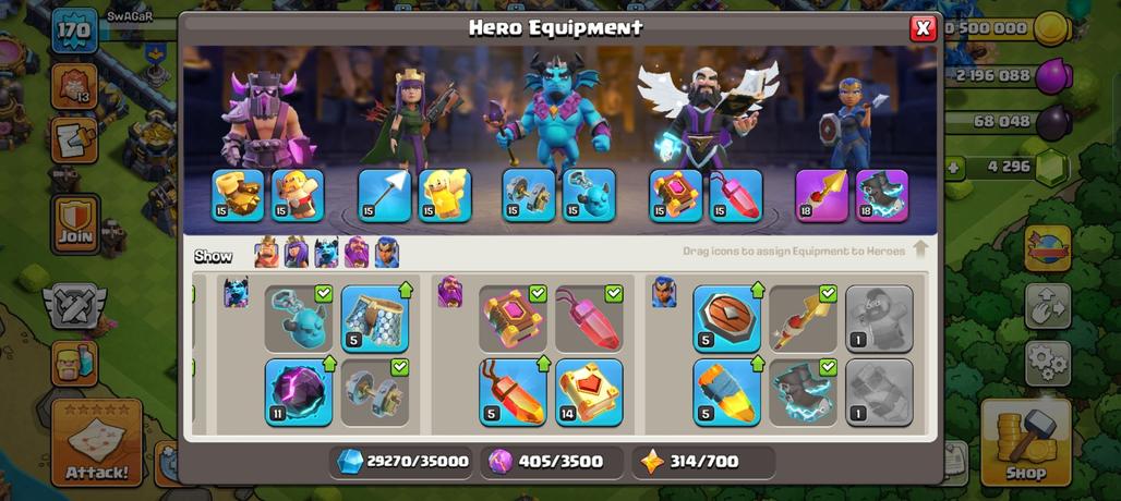 11 EQUIPMENT MAXED đ LEGEND RANKED đ TH 13 || 69-72-50-49-23 HEROES -170 XP - 4300 GEMS - 214 MEDAL - INSTANT AVAILABLE