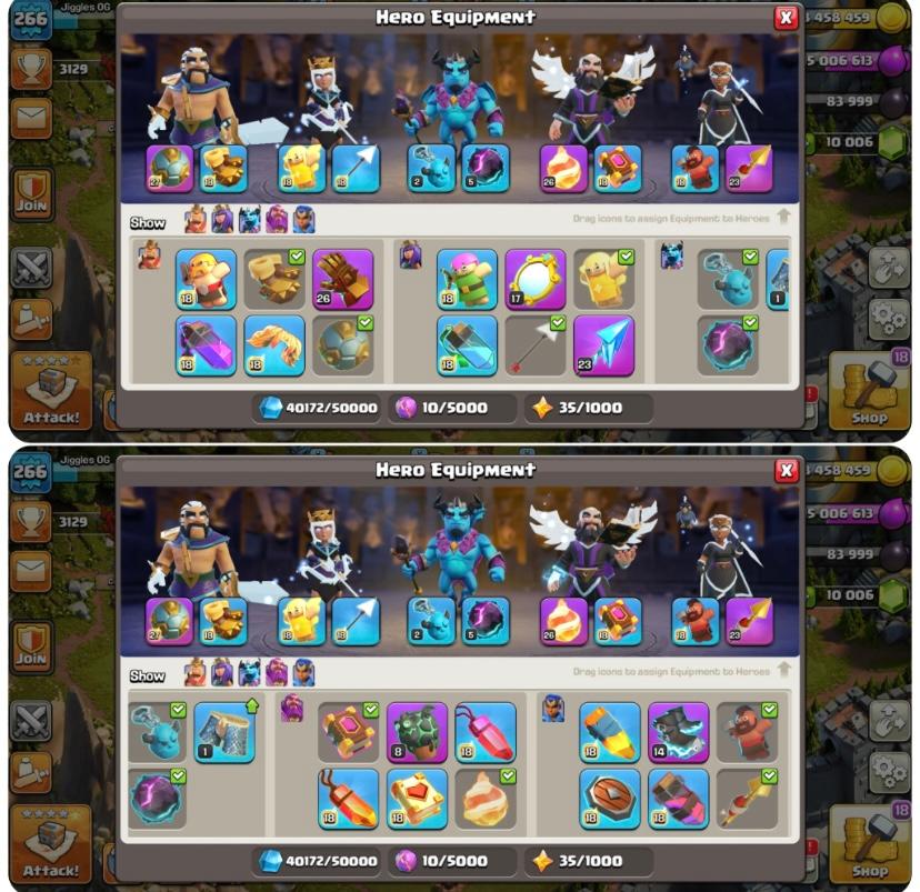 8 EPIC EQUIPMENTS [V.RARE] | XP 237 TH17 NEAR MAX | BK 100 AQ 100 MP 90 GW 75 RC 50 | DECENT B.BASE | BEST DEAL