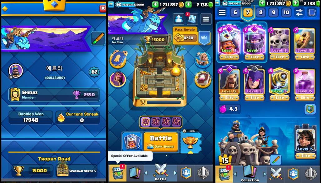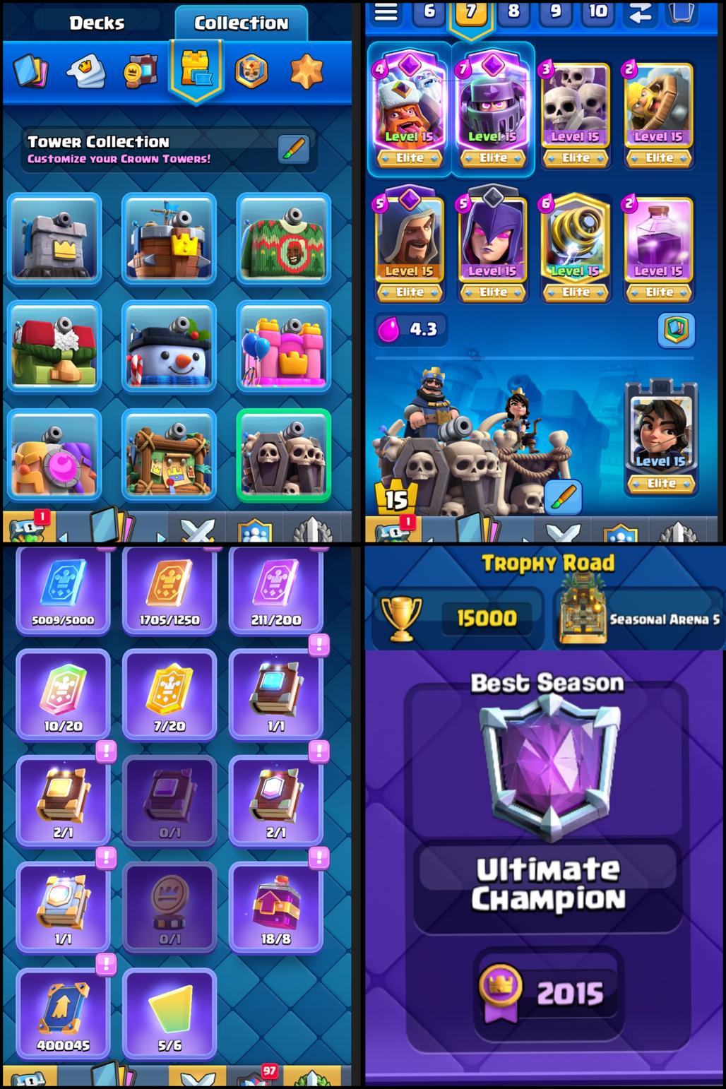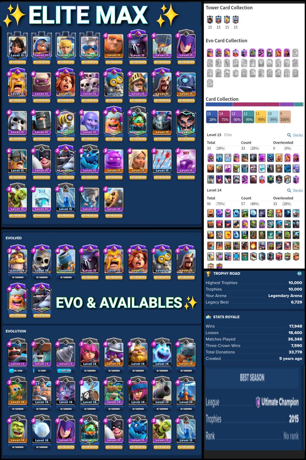 [15K TROPHY +UC]ALL 120 MAX CARD ELITE [33]HIGH LVL 62 | RARE 165+ OLD EMOTES KT15 EVO[10]STACKED FULL BADGES 2K GEMS CR