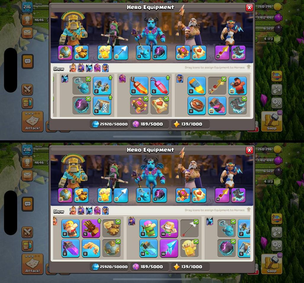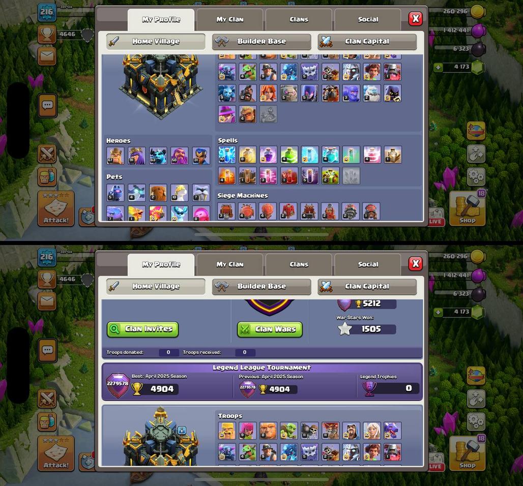 216 XP | TH17 | 6 HERO SKINS | HEROES 67-91-63-58-31 | 1505 WAR STARS | BH-10 | 1K GEMS RENAME | GOOD SKINS