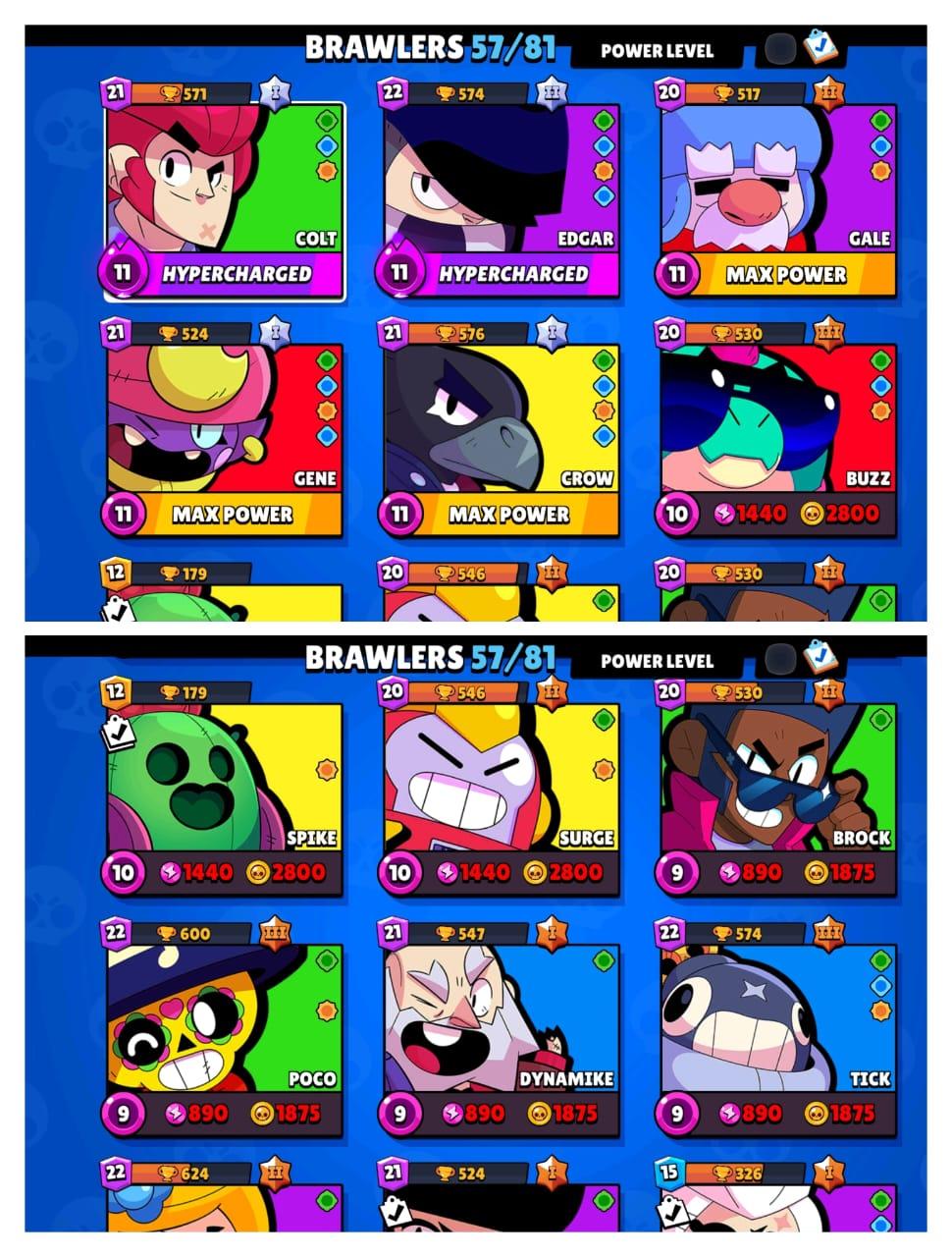 23K TROPHY [] 57-81 BRAWLERS [] 5 MAX BRAWLERS (2 HYPERCHARGED) [] IOS AND ANDROID [] INSTANT []