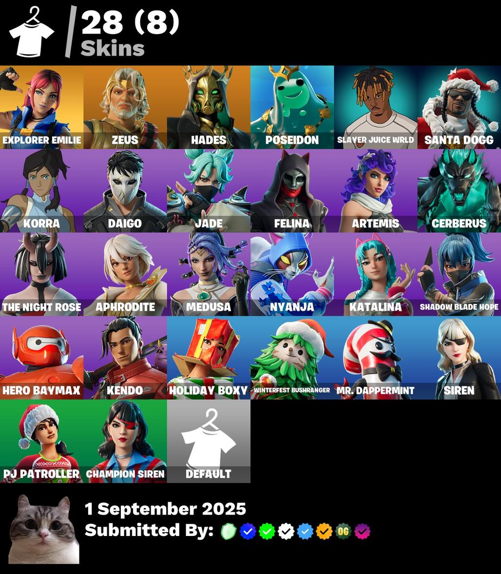 28 Skins | Siren | Champion Siren | PJ Patroller | Explorer Emilie | Zeus | Hades | Poseidon | Slayer Juice WRLD