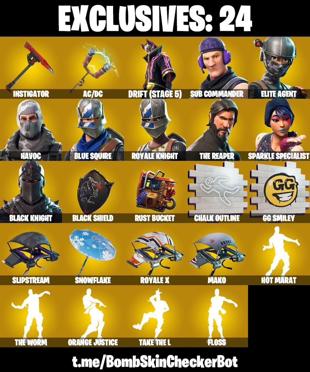 29 skins | Black Knight | Sparkle Specialist | The Reaper | Blue Squire | Royale Knight | Elite Agent | Havoc | 300 VB