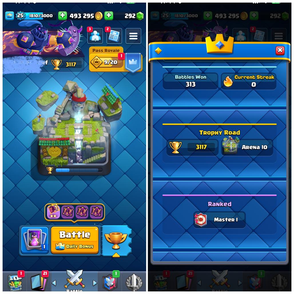 3117 Trophies | Level 25 | King Tower 9 | Arena 10 | Emote 12 Cards 71 | P602