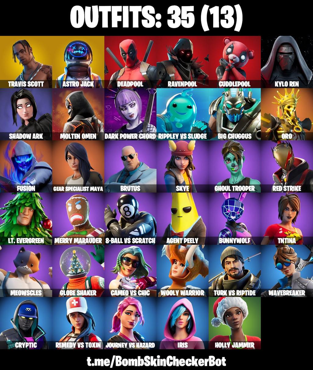 35 skins | Travis Scott | Astro Jack | Fusion | Gear Specialist Maya | Oro | Dark Power Chord | Big Chuggus | 400 VB