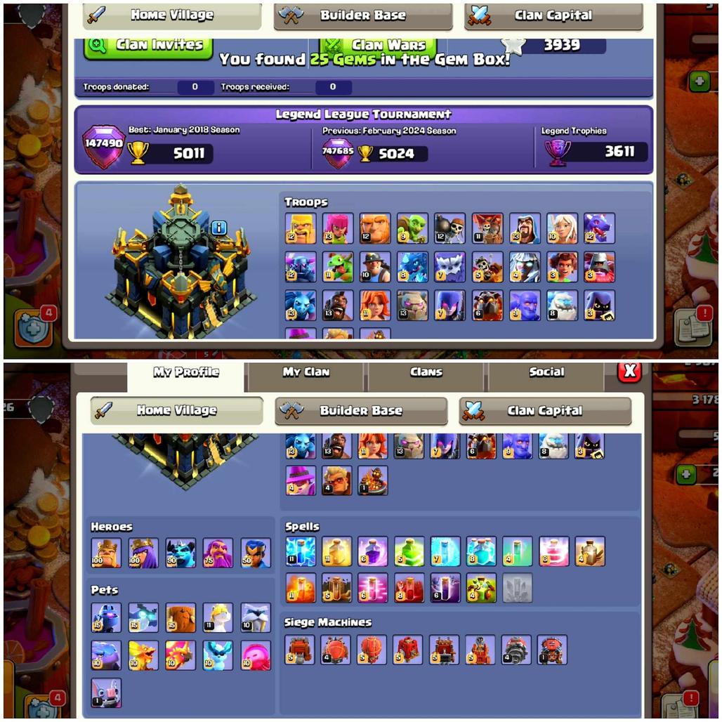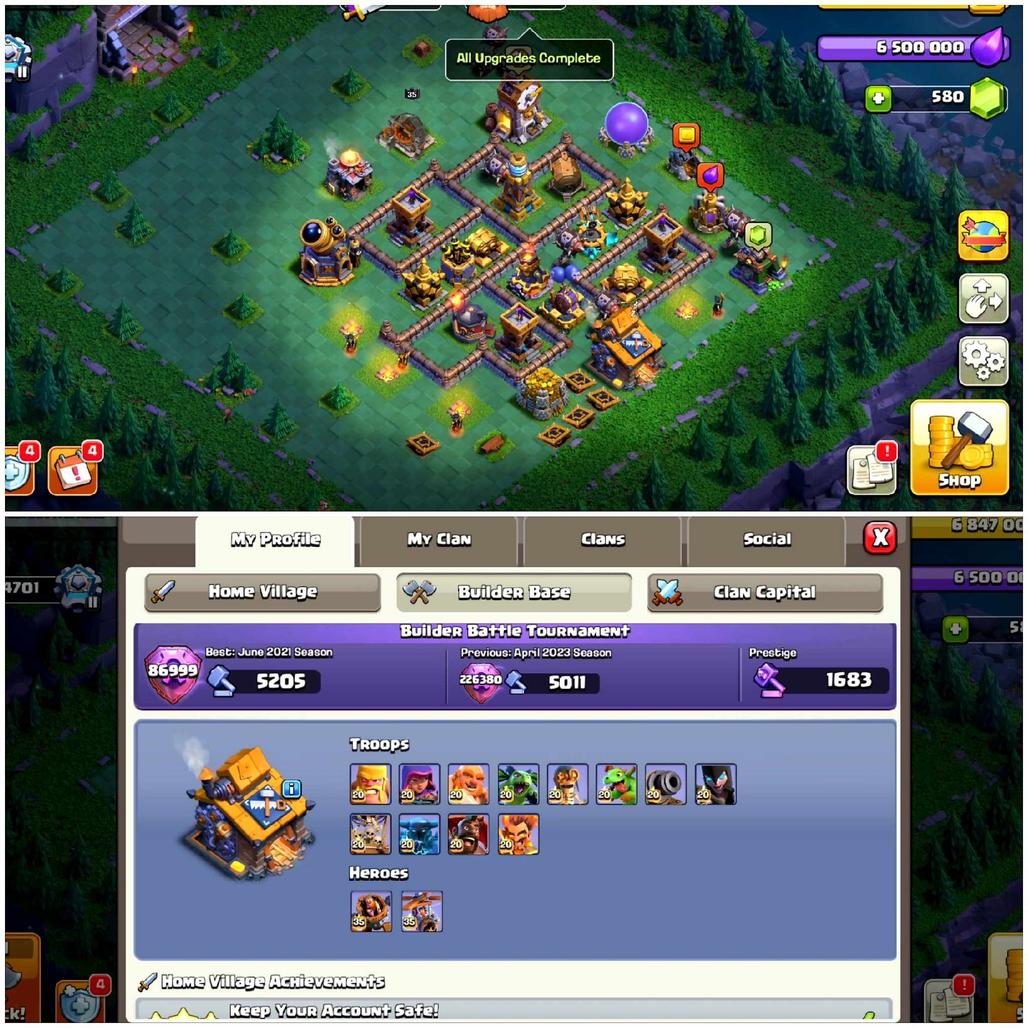 💢Everything is clearly shown in screenshots Heroes,Troops,Base,Seige Mashines,Gems,Builder Base.
