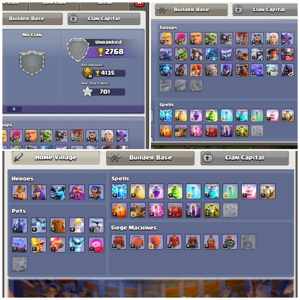 58. LEVEL-172! PREMIUM TH17! HEROES-55|58|42|37|25! NC FREE! VERY GOOD TROOPS! GOOD DEFENCES! FULL ACCESS!