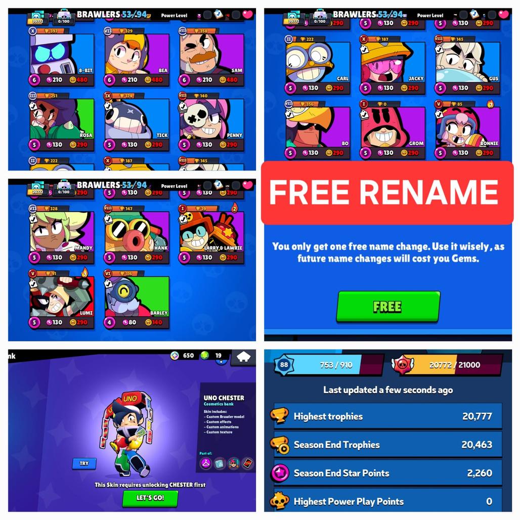 20K Trophies LV 88 | 53 BR | 99 Skins | 5Maxed 3Hyper | FREE Rename | Instant Delivery