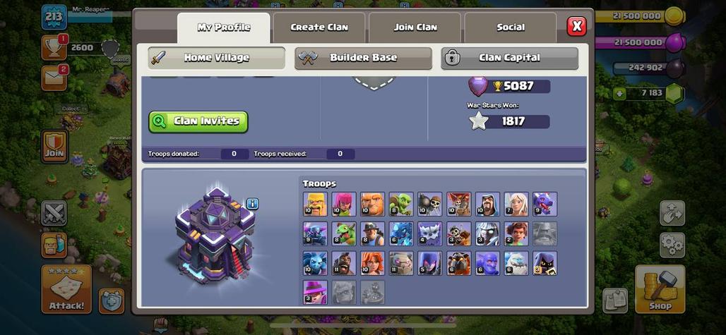 [ 7000 Gems ] TH14 Full Max ! New TH-15 - High XP-213 | 1817 War Stars | Epic Equipment | 485 league medals !! A522