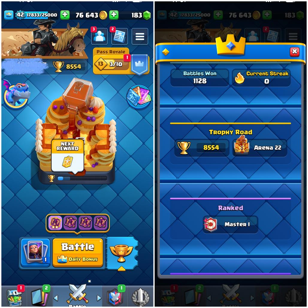 8554 Trophies | Level 42 | King Tower 14 | Arena 22 | Emote 38 Cards 120 | P451