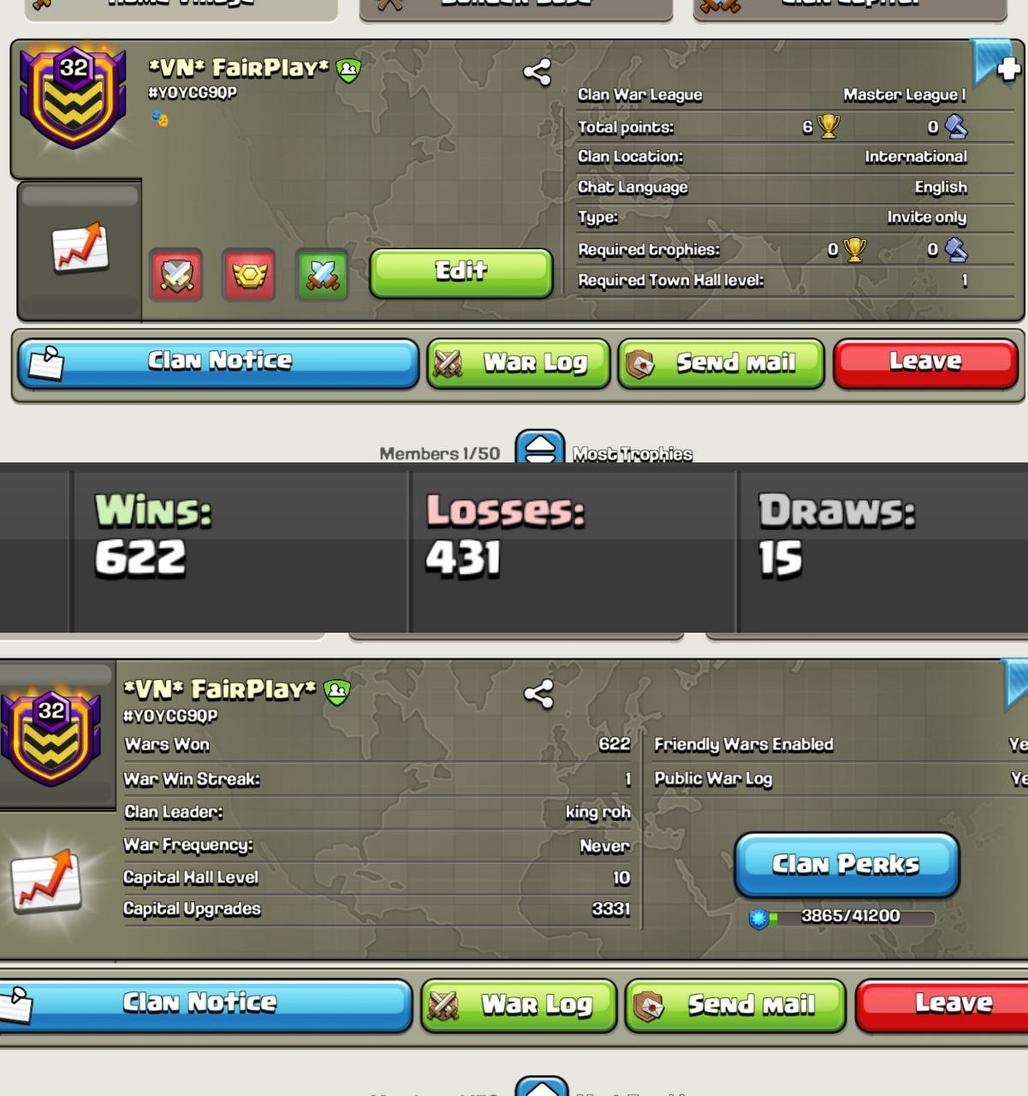 Level 32 || VN Fairplay || Clan Capital 10 Max || Master 1 || 622wins | 431 Loss