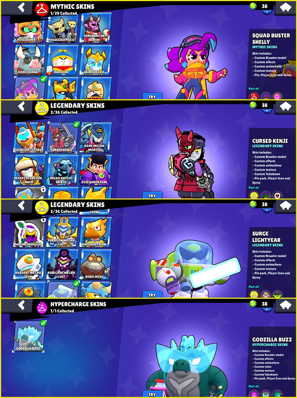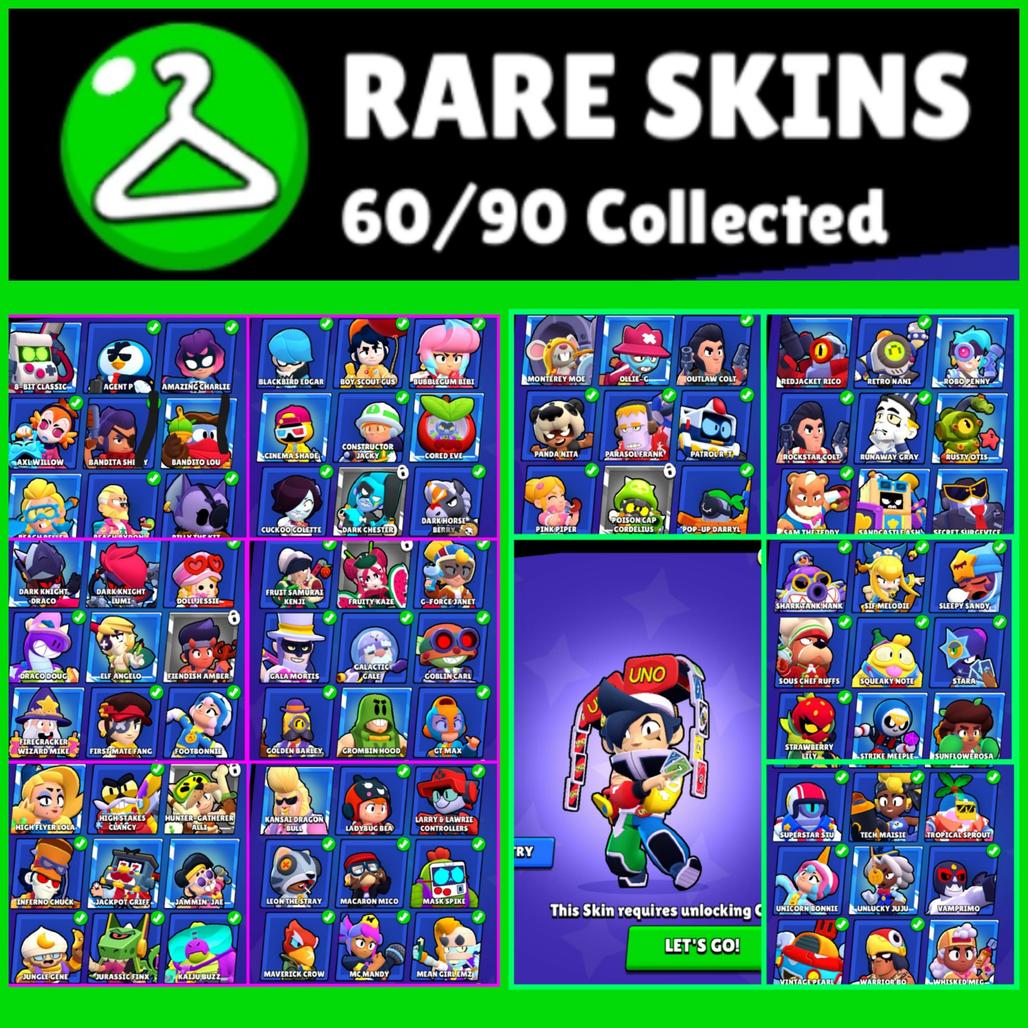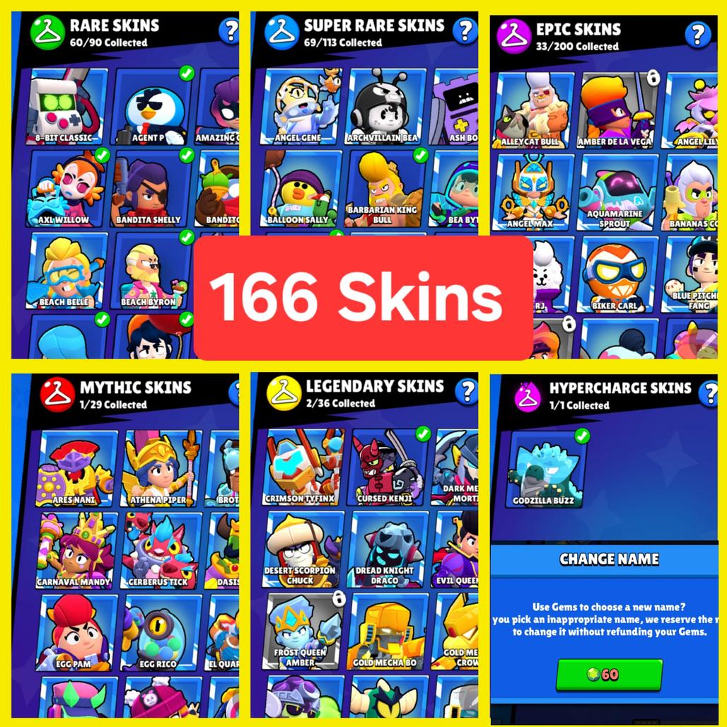 đ Total Skins: 166 (đą 60 Rare, đ” 69 Super Rare, đŁ 33 Epic, đŽ 1 Mythic, đ 2 Legendary , âĄ1 HYPER)