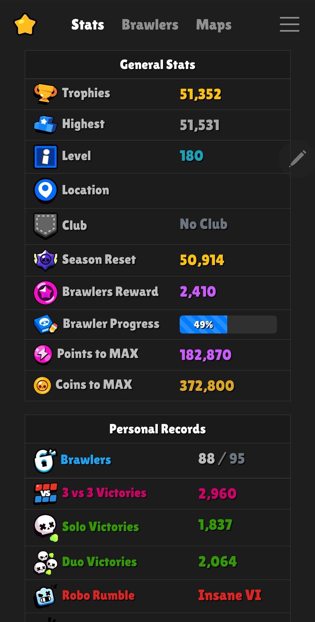 đ Trophies: 51352 đïž Level: 180