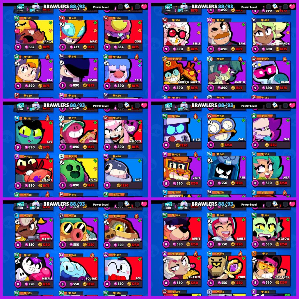All Brawlers are level 7 or higher.(27 at Level 9)(21 at Level 8)(14 at Level 7)