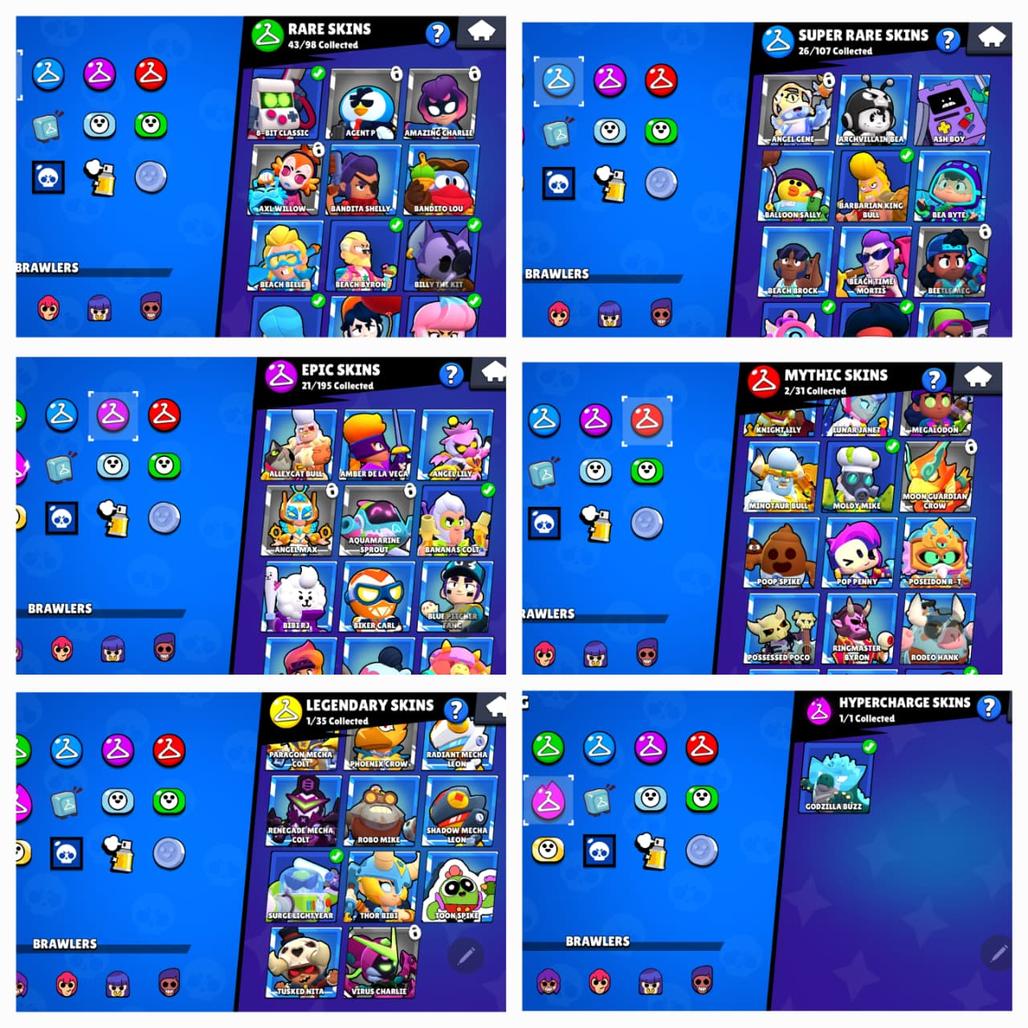 🎭 Total Skins: 94(🟢 43 Rare, 🔵26 Super Rare, 🟣21 Epic, 🔴 2 Mythic, 👑1 Legendary , ⚡1 HYPER)