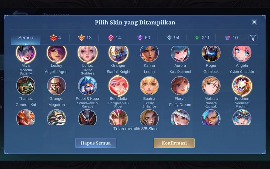 - SKIN LEGEND : Miya, Lesley, Lunox, Granger