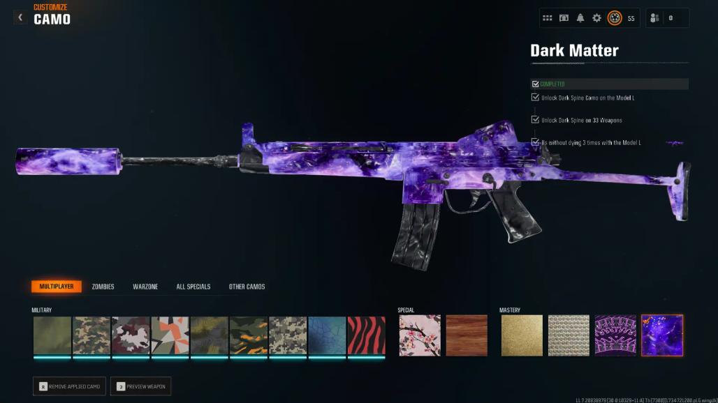 BO6 | WZ4 | Dark Matter Legit Unlocked + Level 55 | 495+ Camos Unlocked
