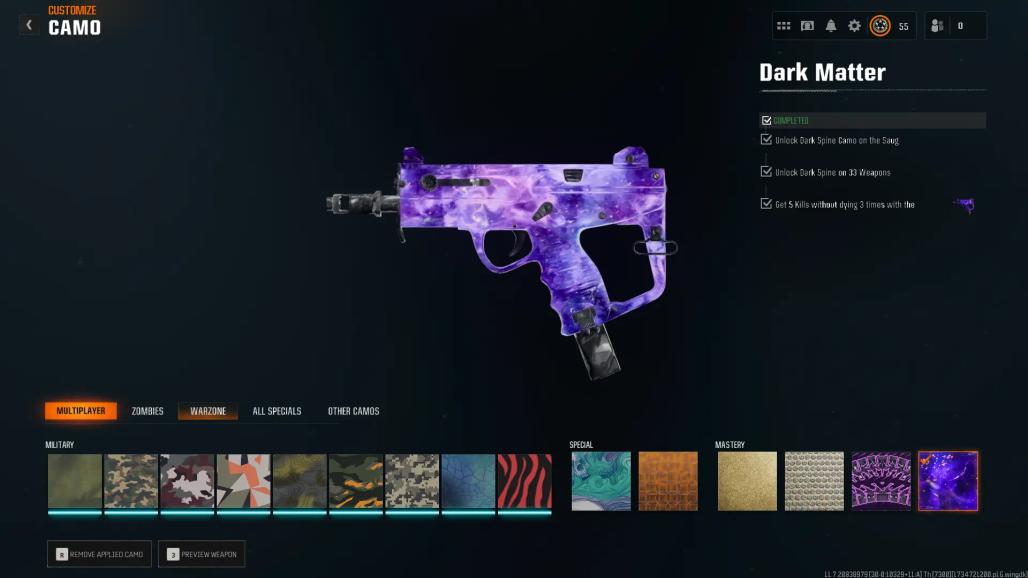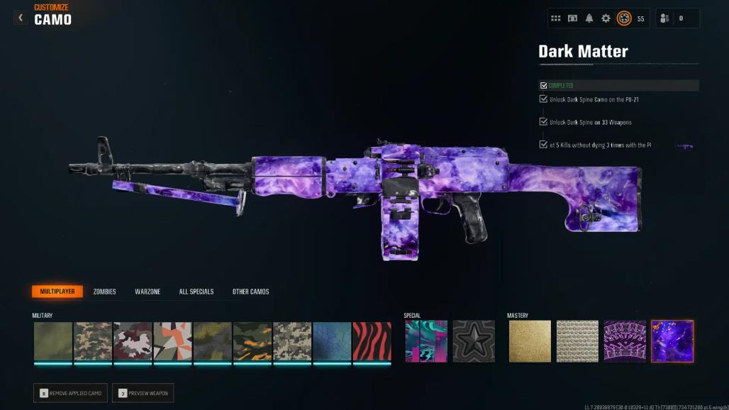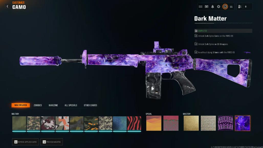 🔫 33 Dark Matter Camos Guns Unlocked ✅