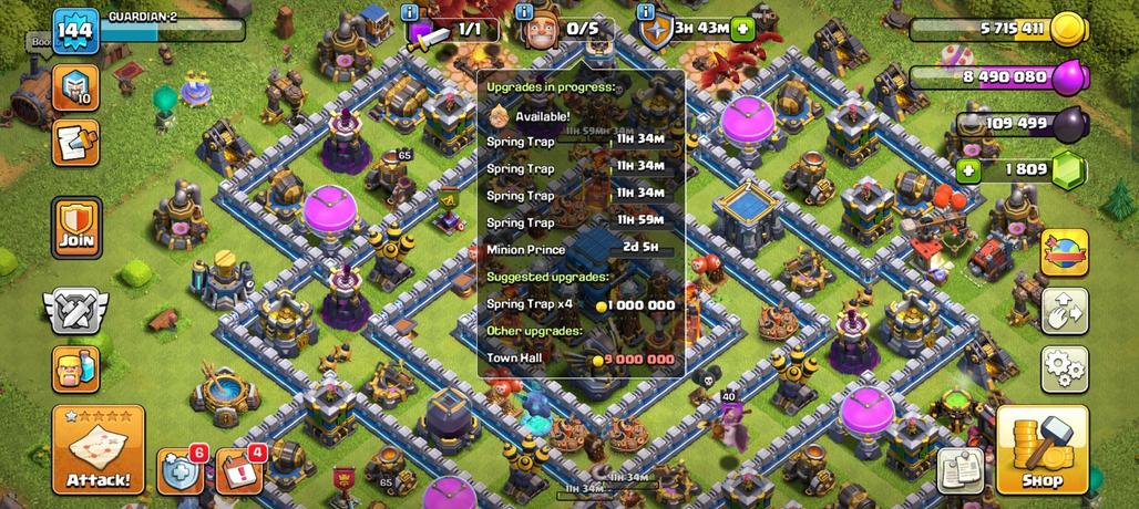 CHEAP n RANKED || TOWNHALL 12 MAXED - 65-65-38-40 HEROES - 1800 GEMS - 144 XP - 1554 WWS - AVAILABLE - INSTANT