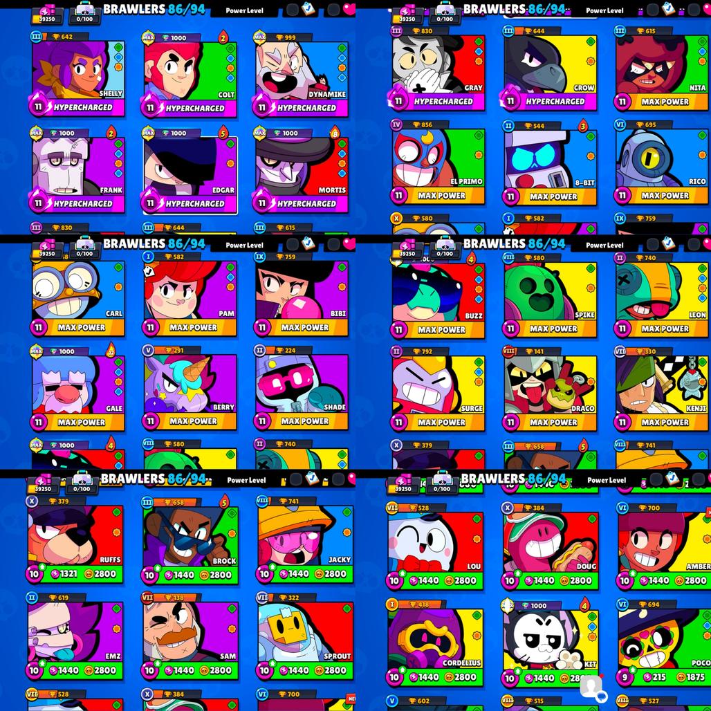• [ CHEAPEST ] 39,000 TROPHY | 24 MAX POWER - 8 HYPER-CHARGE - RARE GOLD MECHA BO | 86/94 BRAWLERS | 122+SKINS | A712