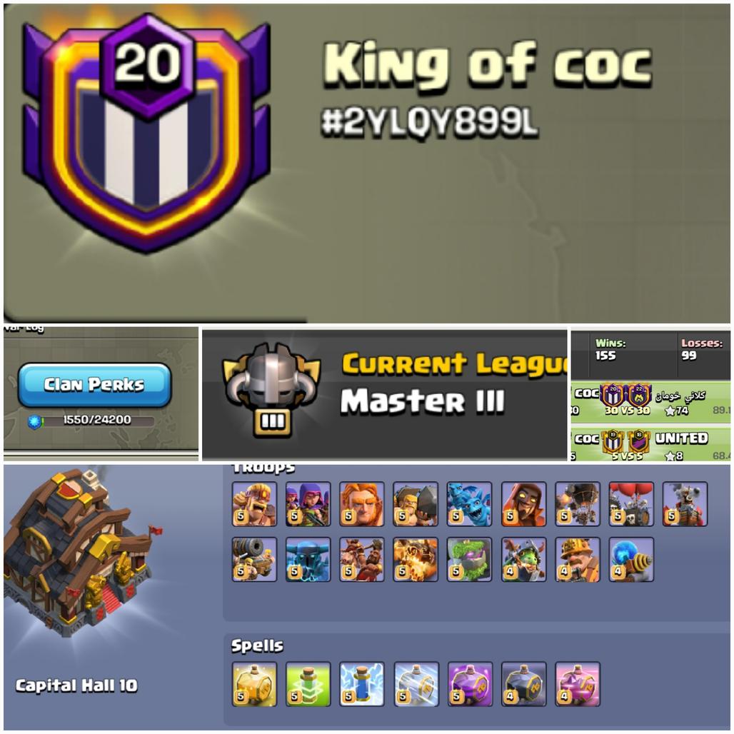 Clan Name:- King of Coc -||- Lvl - 20 -||- Master 3 -||- Capital hall 10 -||- Win 155 -- Loss 99 -||- Good Name -||