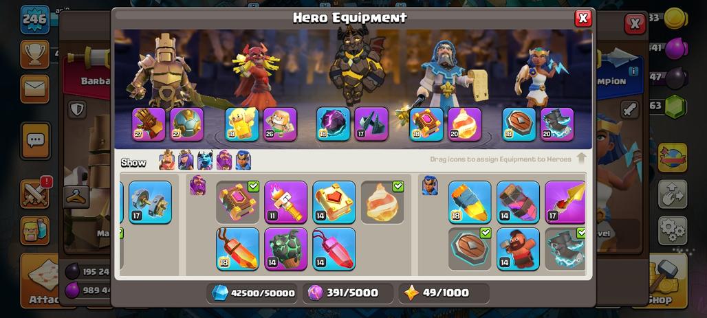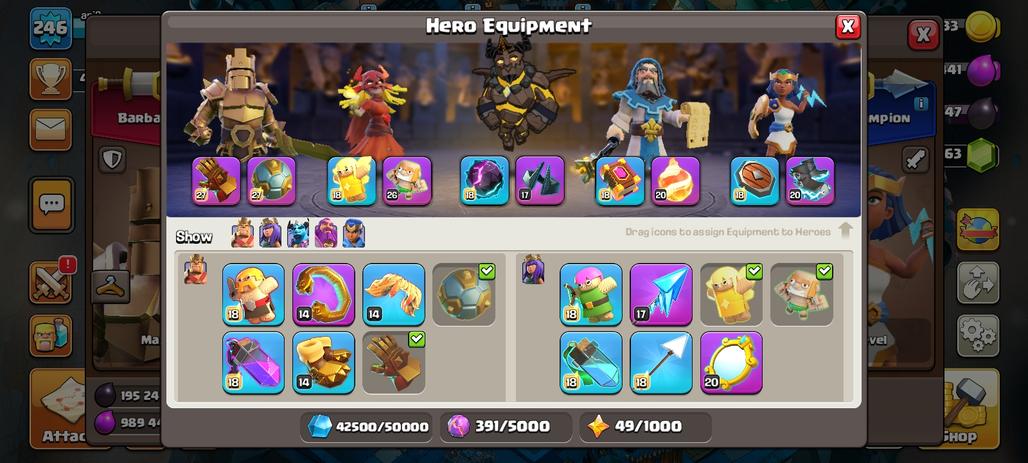 DISCOUNT(RARE TH17MAX 2 SKIN LEAGUE AND WAR AS) | CN FREE AND KLAN LEVEL 22 | HERO FULL MAX | FULL EOIC SKIL |25SKIN