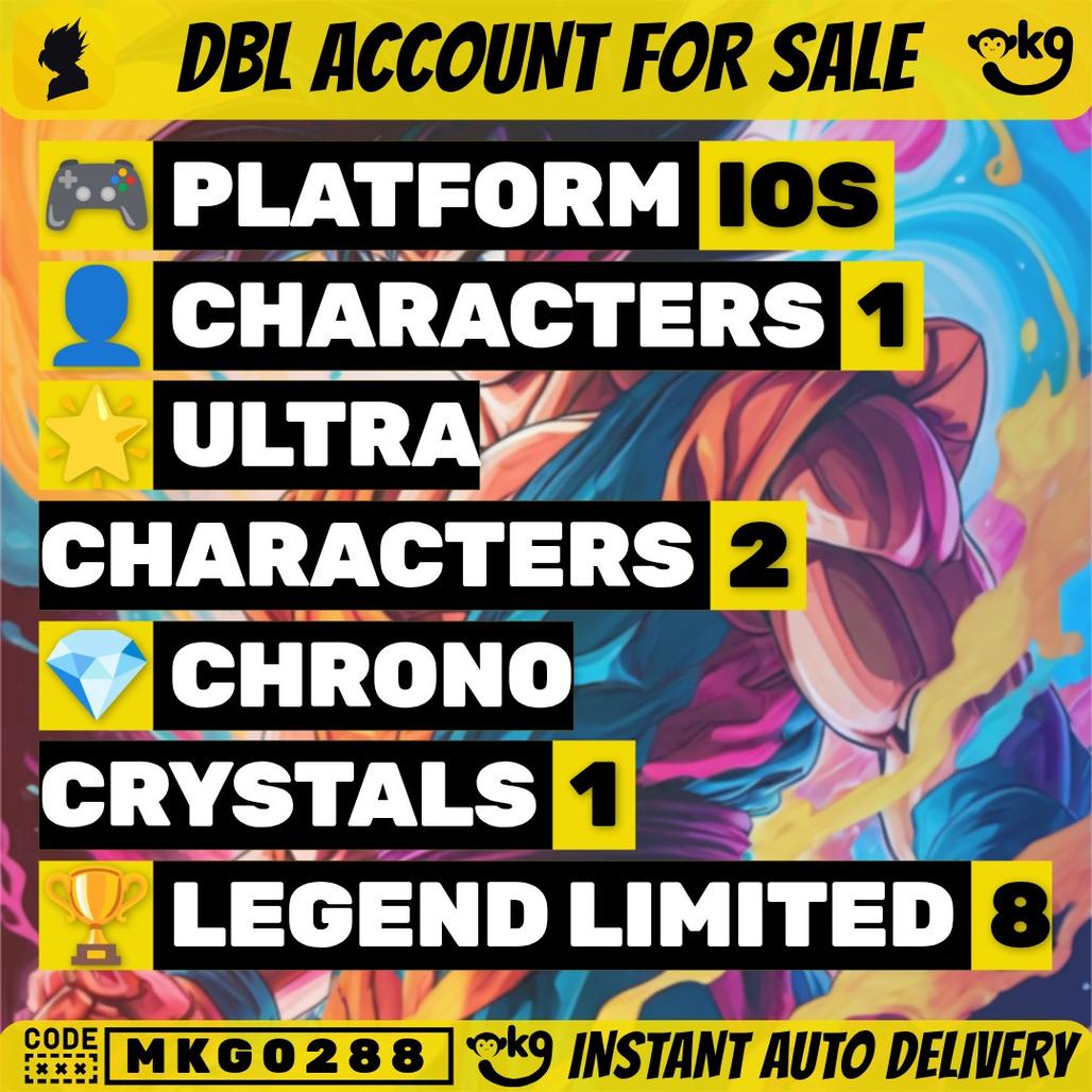 This account offers a solid foundation with **8 Legend Limited** characters and **2 Ultra** characters, perfect for players looking to enhance their roster. With a single **Zenkai** and **Sparking** character, it's ready for strategic gameplay. Minimal resources like **Chrono Crystals** and **Summon Tickets** are included for immediate use.