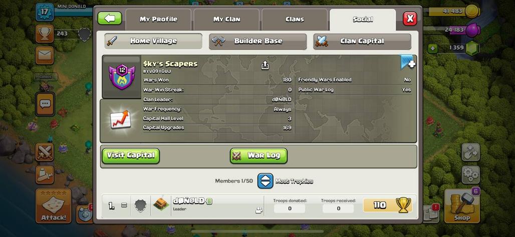 CLAN LV 17 | NICK NAME (BRHANDAL PWR)🔥 | WAR WIN 235⭐ - WAR LOSE 115 | CAPITAL LV 8 | WAR LEAGUE GOLD III