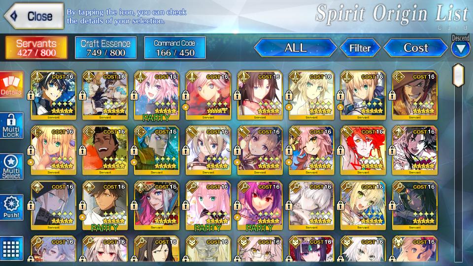 FGO319: NA - 52 SSR - 61 wnp - Support RGB - 389 Golden Fruit - 85 Lore - 34 Grail
