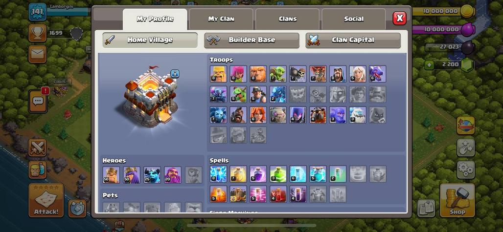 Full MAX TH11 : 141 XP | Epic Equipments | Heros Skin | 340+ league medals !! Magic Items | Instant delivery A533