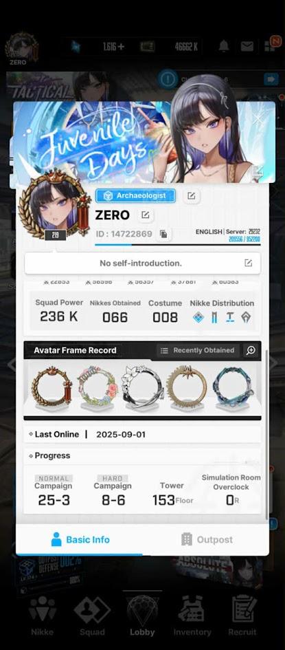 GLOBAL - 236K Squad power - Lv 219 - 66 Char & 8 Skin - Lv Heros 221 - 46662K Credit - 1.616 Gem