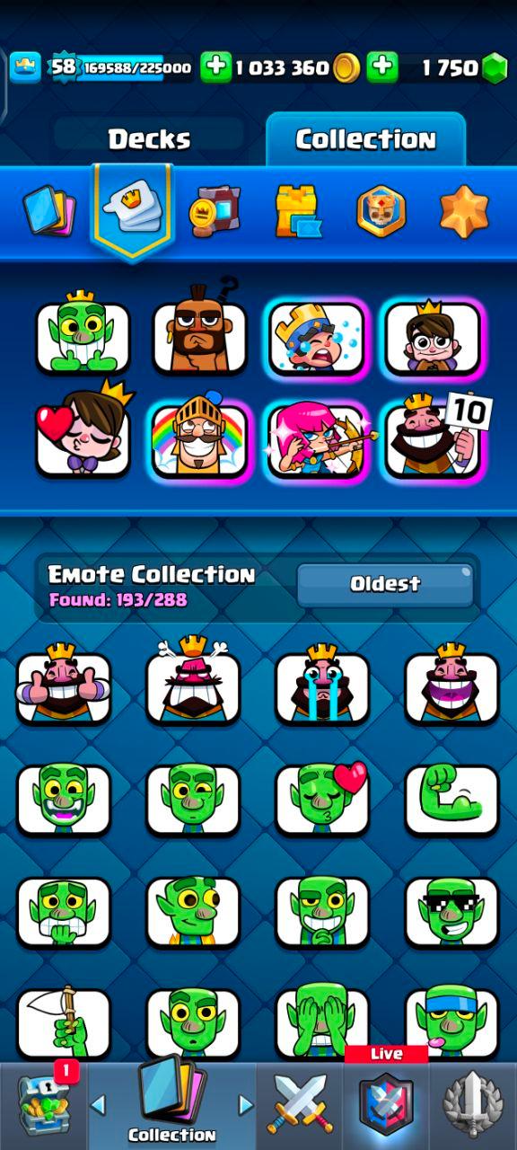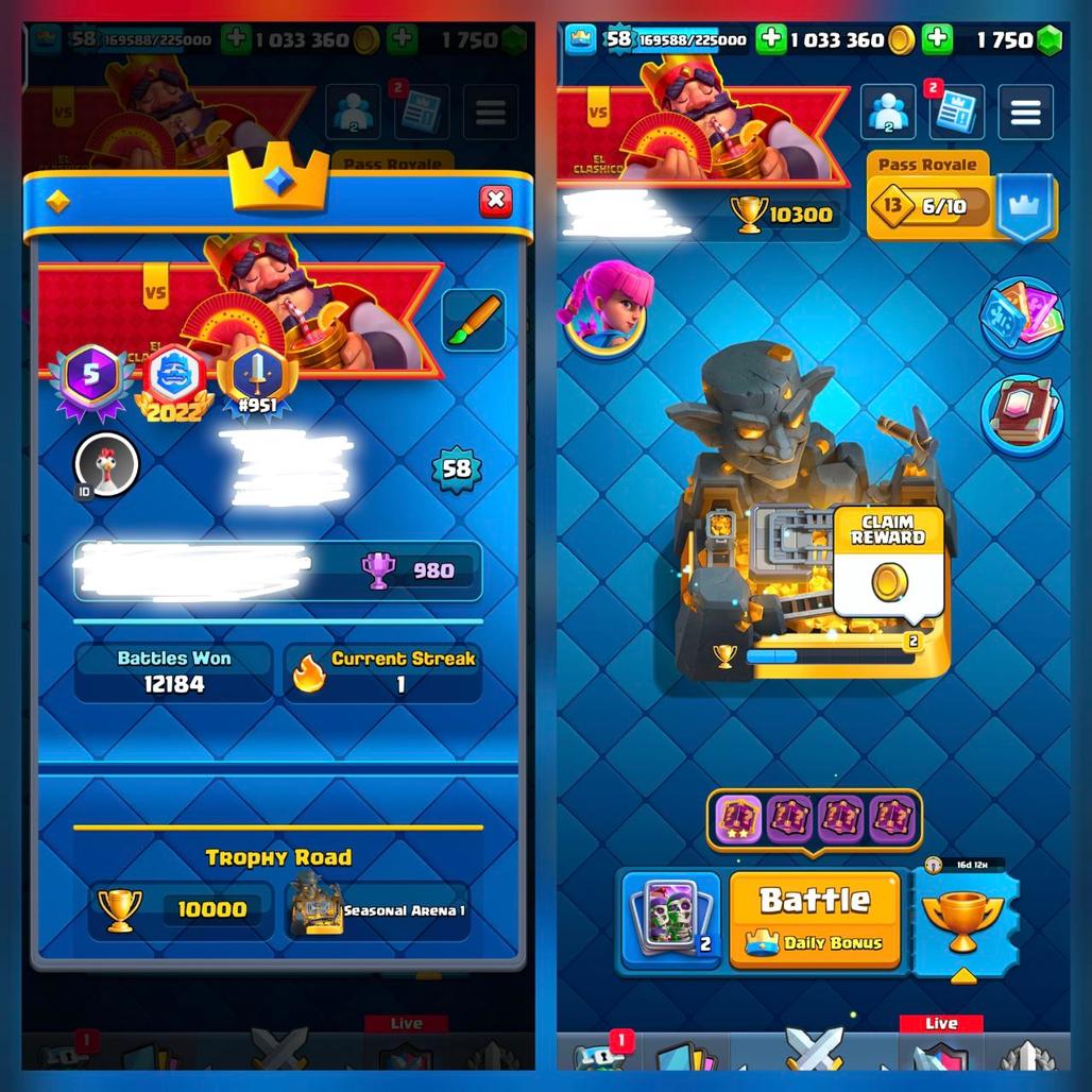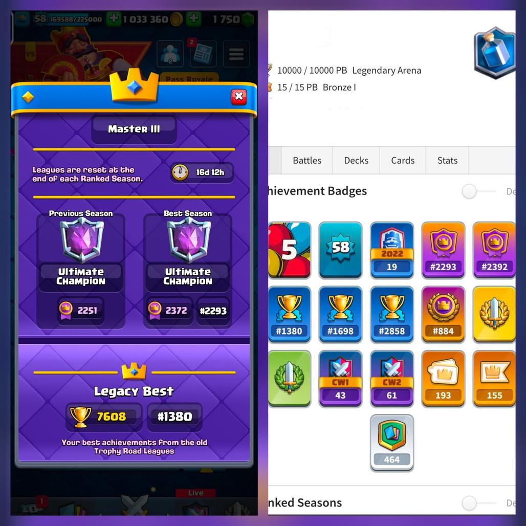 ✨👾{GLOBAL RANK - 6 Times} INSANE 193 RARE OLD EMOTES [ RAINBOW PRINCE & KISS EMOTE ] MAX CARD [88] LOADED ELITE & EVO | INSANE 10K + TROPHIES | HIGH XP 58 | KT15 ARENA 24 {TOP RANK} FREE NC | STACKED BANNER BADGES |