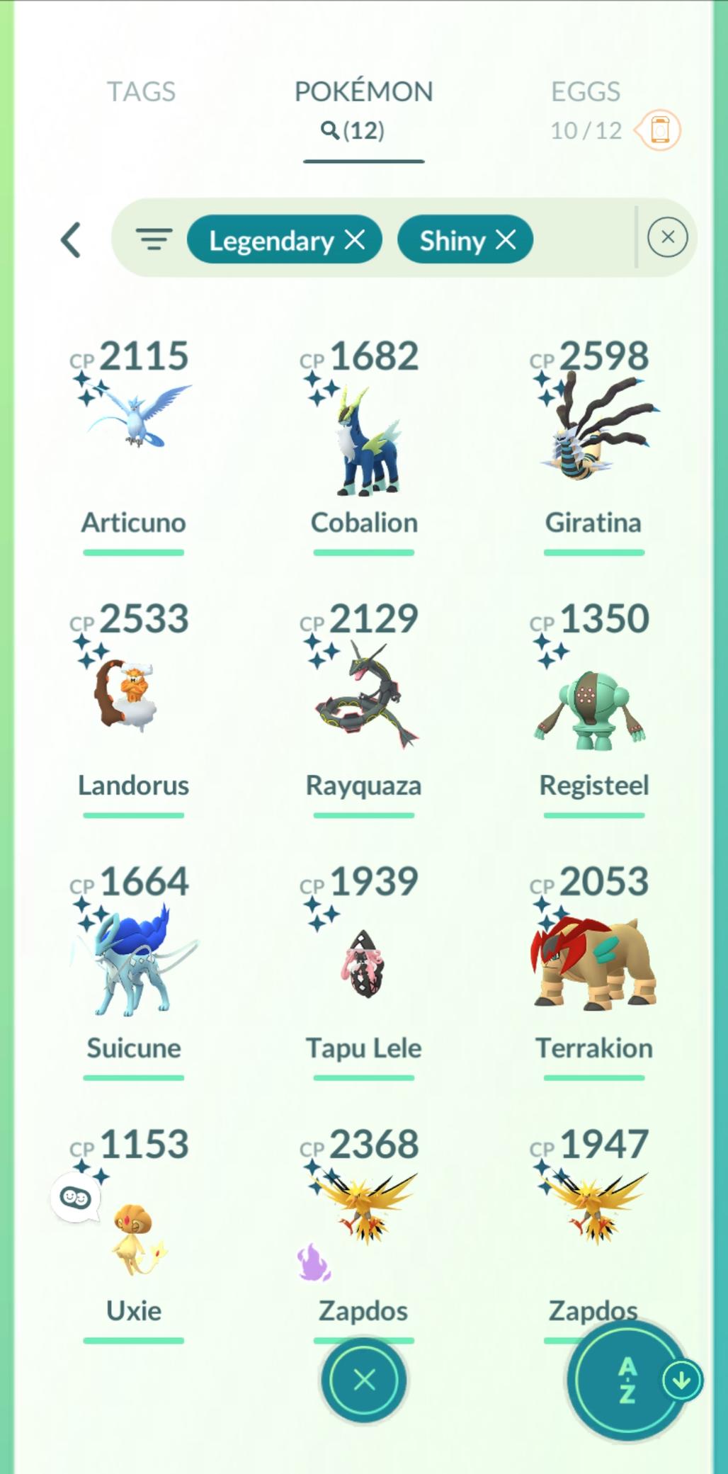 • Legendary & Shiny : 33 [ Articuno, Azelf, Cobalion, Dialga *Origin (2) Giratina *Origin, Giratina *Altered (3), Kyogre, Landorus *incarnate, Landorus *Therian, Necrozma (2), Palkia, Palkia *Origin (2), Rayquaza, Regieleki, Registeel, Reshiram, Suicune, Tapu Fini, Tapu Lele, Terrakion (2), Thundurus, Uxie, Xerneas (2), Zacian, Zapdos, Zapdos *Shadow]