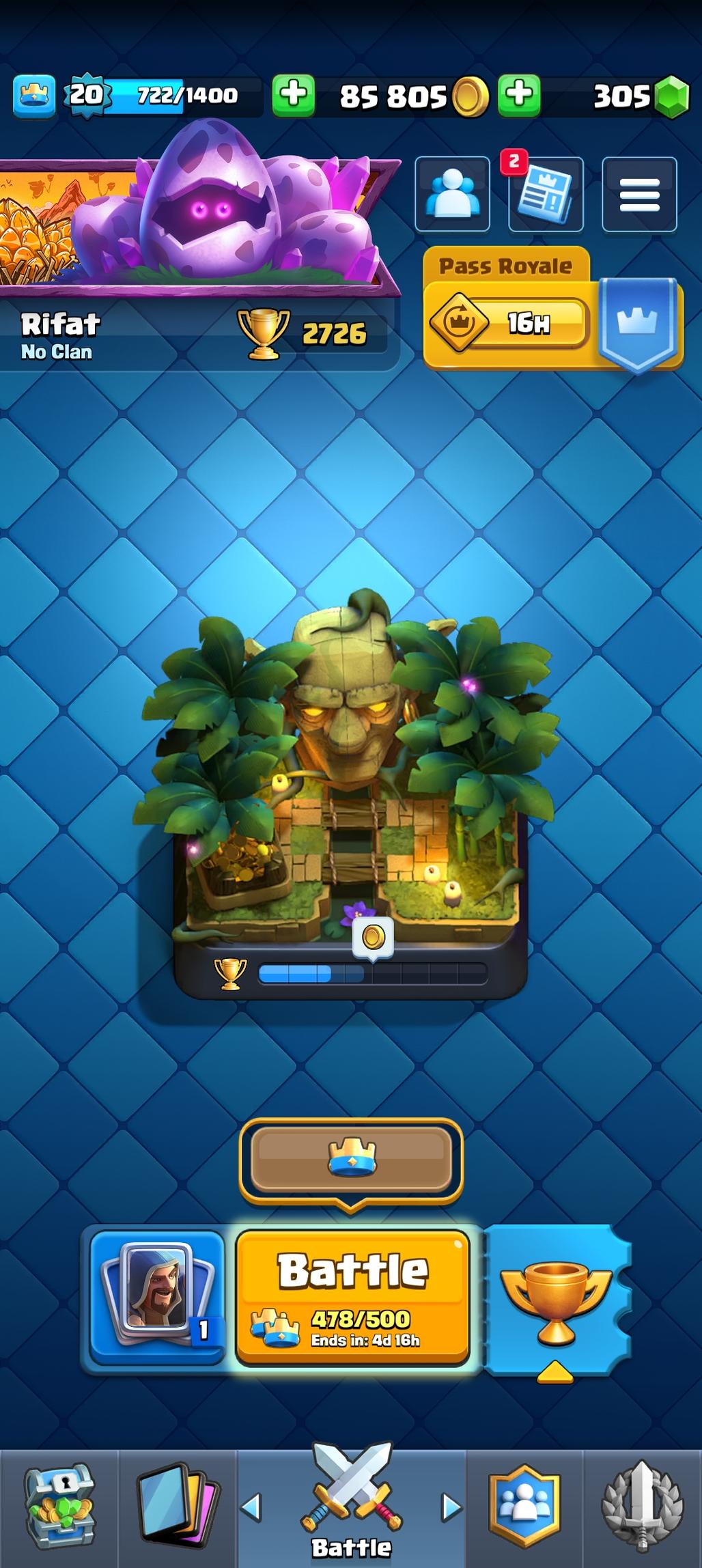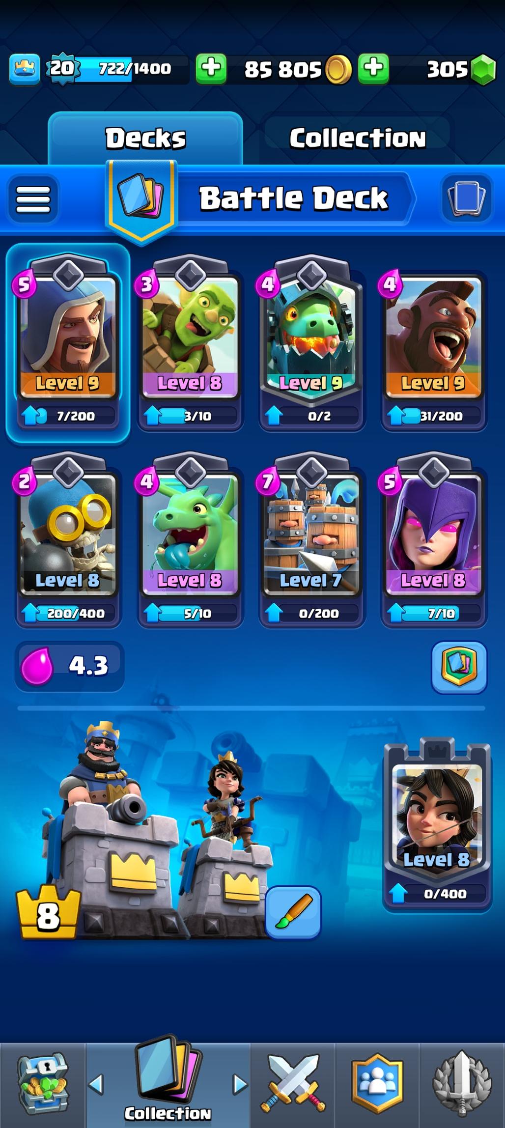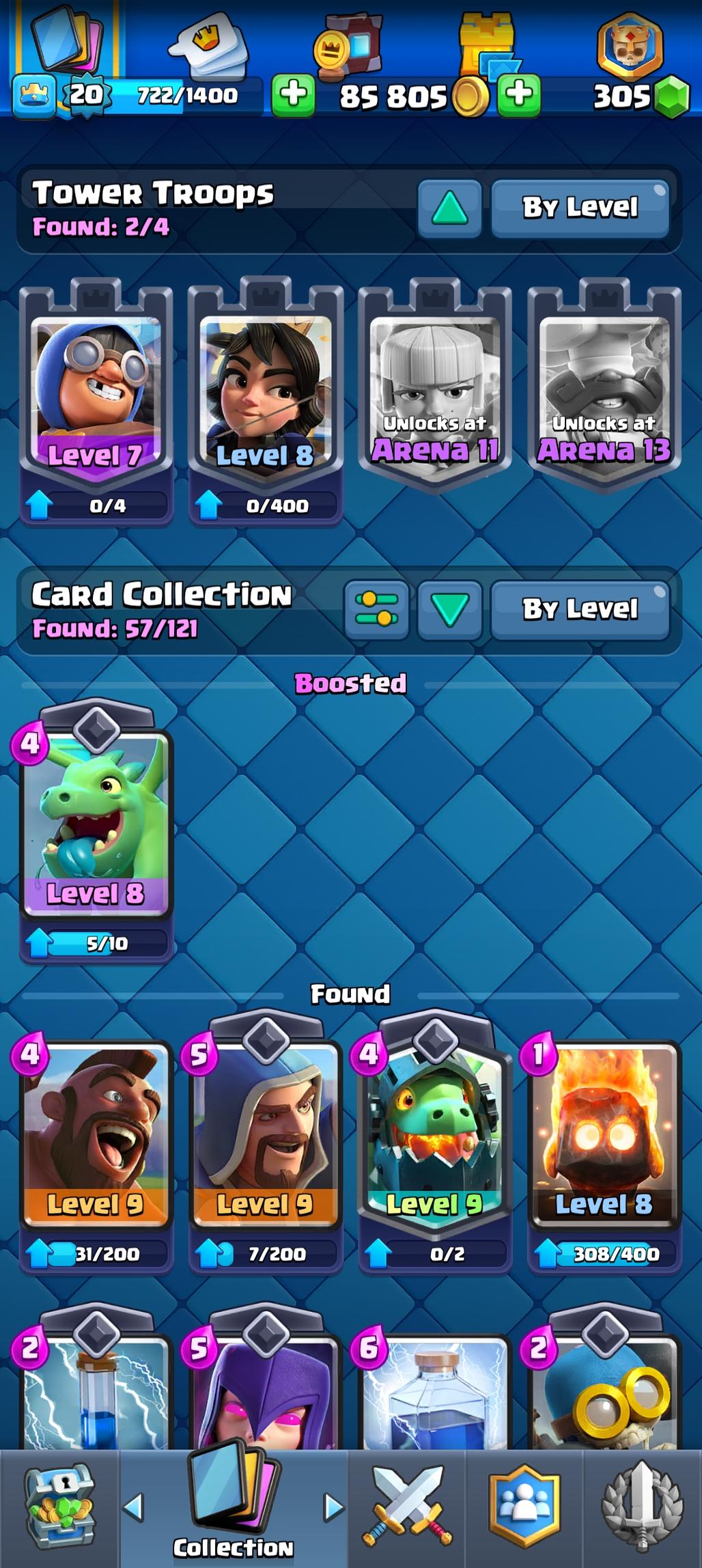 KT 08 [LVL.20) 57 CARDS || NC-FREE || 305 GEMS & 85K GOLD || 2726 TROPHY || ANDROID & IOS
