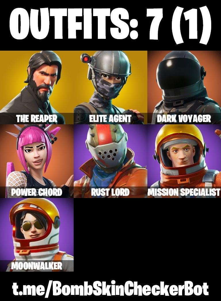 [PC] 7 skins | The Reaper | Elite Agent | Dark Voyager | Power Chord | Moonwalker | Rust Lord | Mission Specialist 750VB