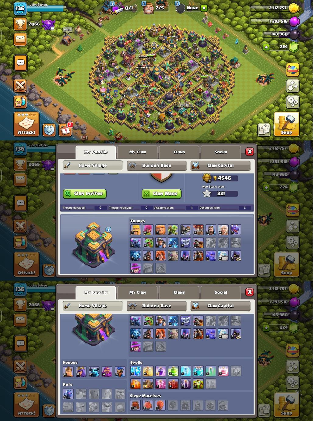 J1823||TH14 ||Wall Full Max||Defence Maxed||Rare Scenery||Pets Seige On||Heroes:41-52-30-14-9||Level:136