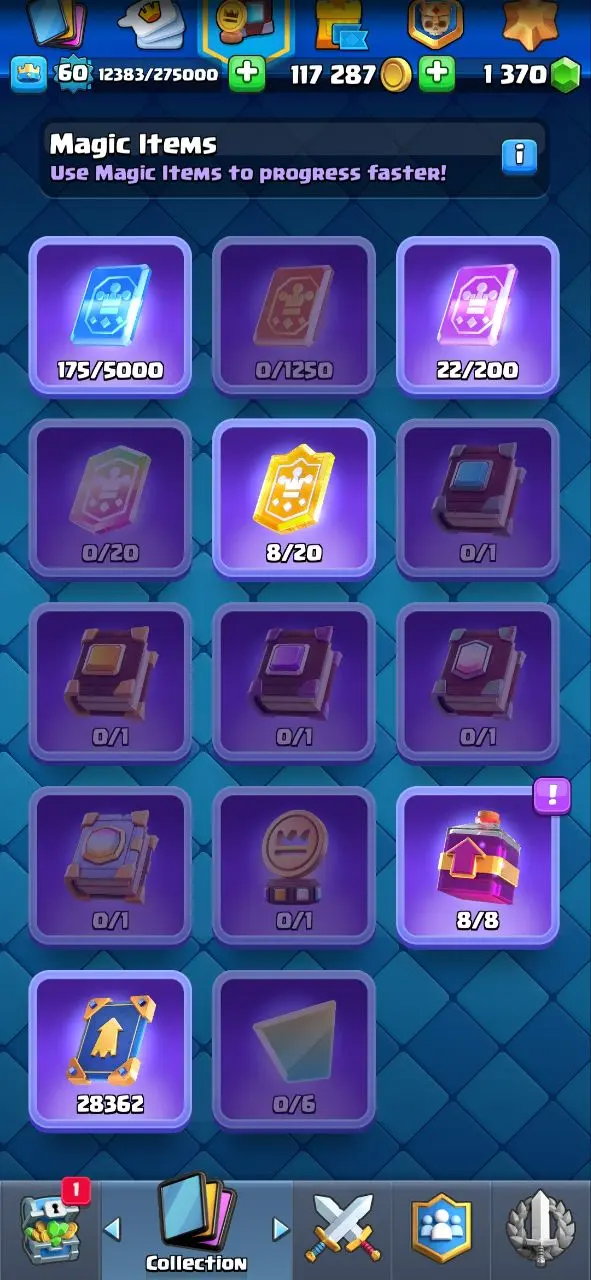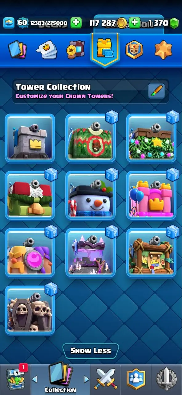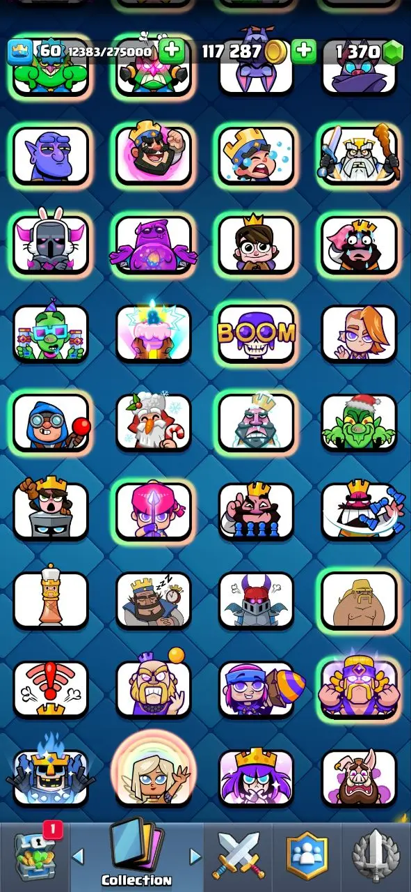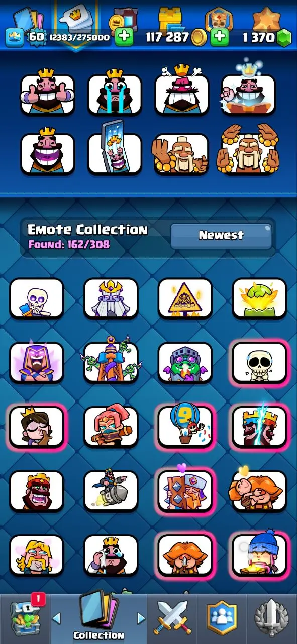 đŸ”„KT15 XP60đŸ”„ | 70 MAX 21 ELITE | 15 EVOLOTION | 162 EMOTE | 11500 TROPHY | 9 TOWER SKIN | 1370 GEMS | INSTANT DELIVERY