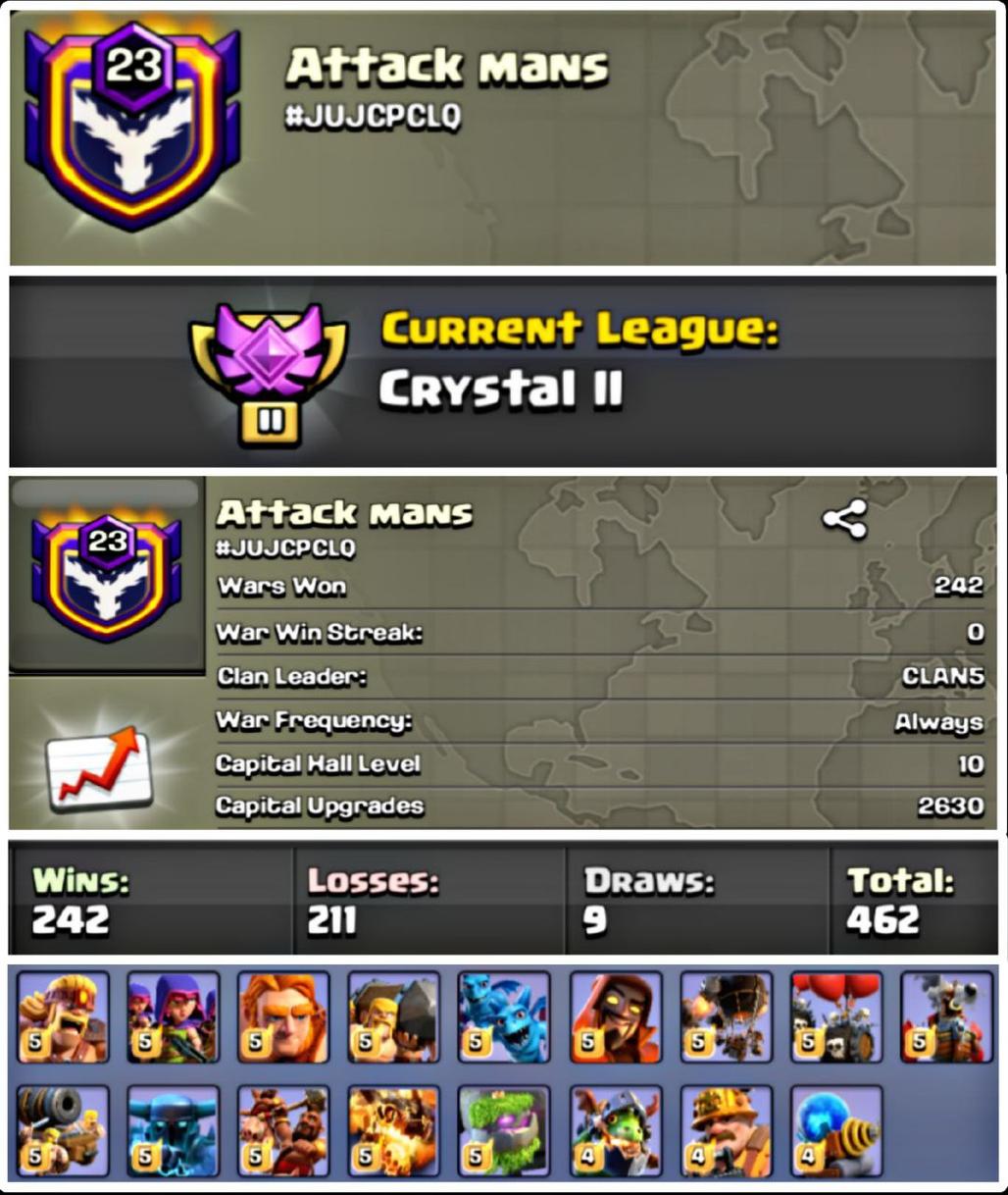🔰LEVEL 22 [] NAME: DHING STARS🔥 [] CAPITAL HALL 7 [] VICTORY 593 [] CWL LEAGUE: DIMOND 2 [] BEST OLD CLAN [] INSTANTLY