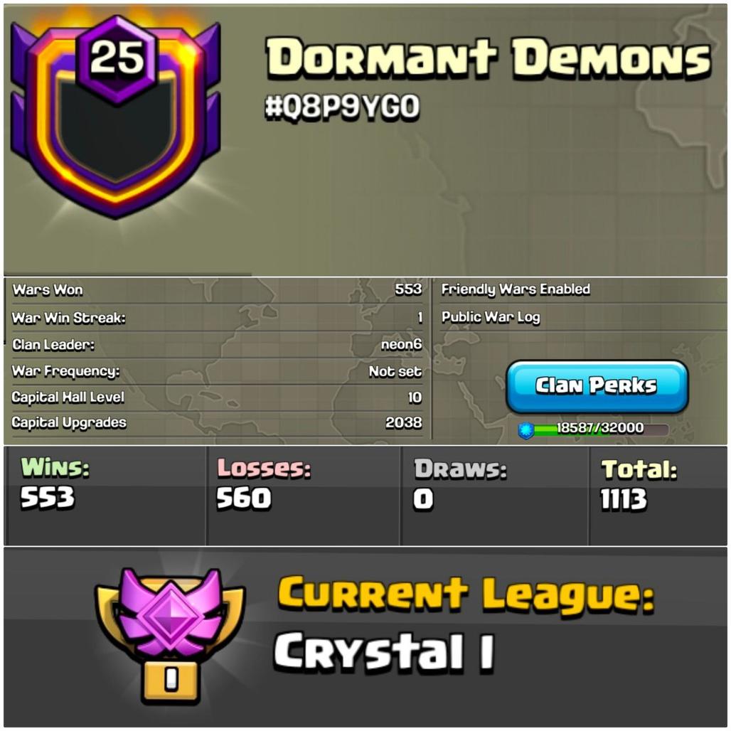 Level 25 đŸ’„ Name- DORMaNt DeMONS😎 Clan capital 10 || Crystal league || Great warlog || Fast delivery