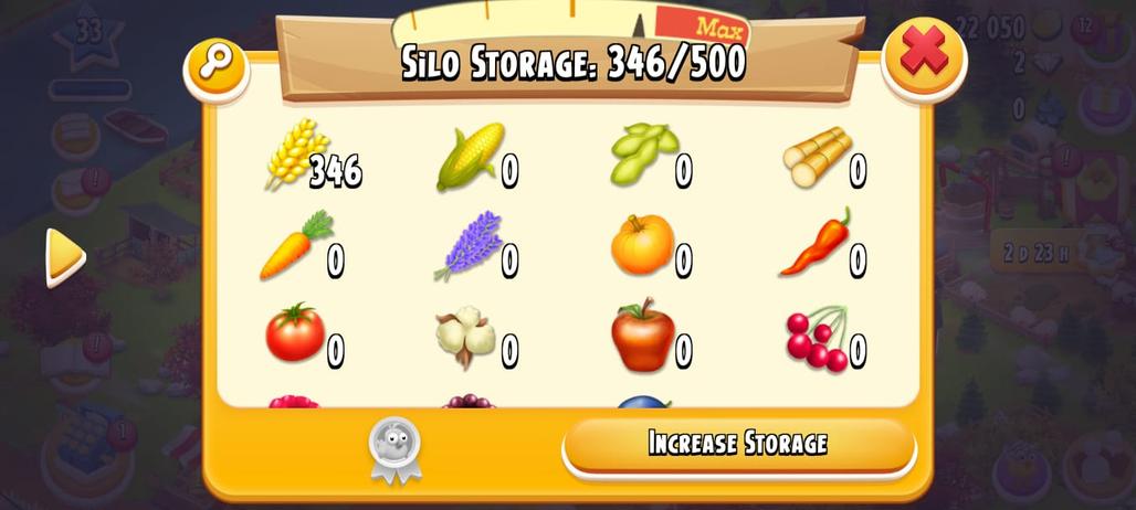 LEVEL 30 / 1000 Barn Storage / Fully Filled With Tools / Main Land Open / 500 Silo Storage / 22K Coins & 02 Diamonds /