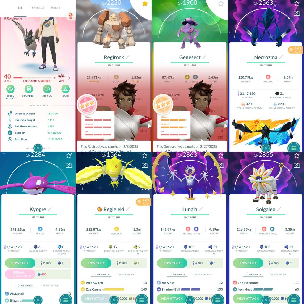 #POKEMONGO | LEVEL 40 VALOR | HUNDO PURIF REGIROCK SHINY NECROZMA SHINY KYOGRE REGIELEKI LUNALA SOLGALEO DIALGA O BG | 114 SHINY | 143 LEGENDARY