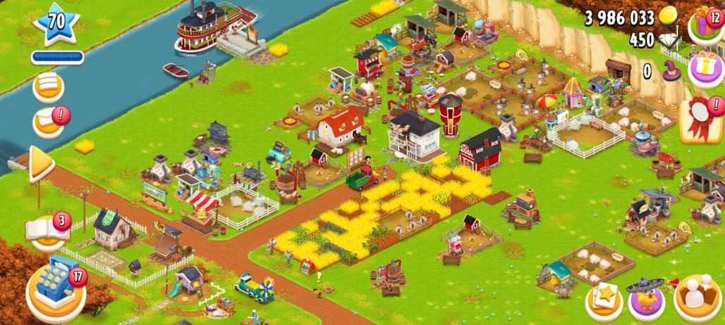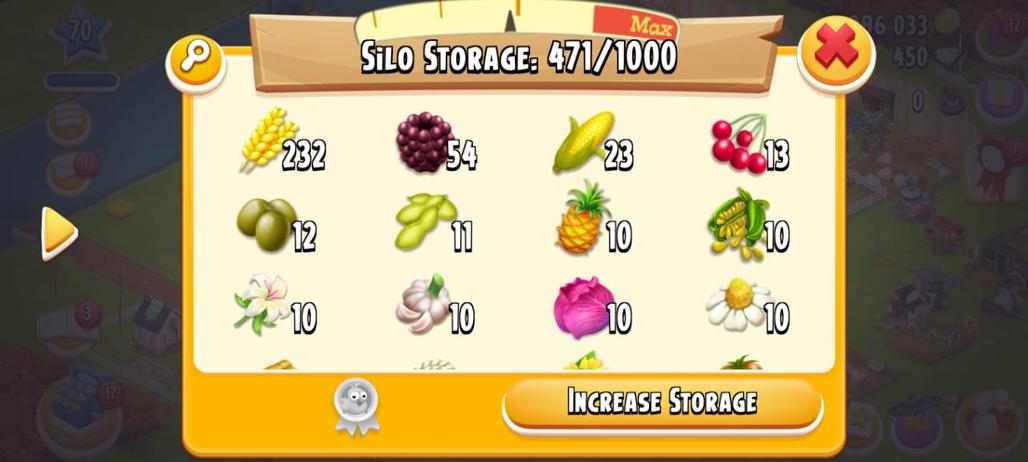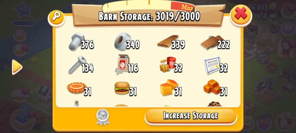 LEVEL 70 / 3000 Barn Storage / Fully Filled With Tools / Main Land Open / 1000 Silo Storage / 3M Coins & 450 Diamonds /