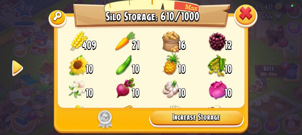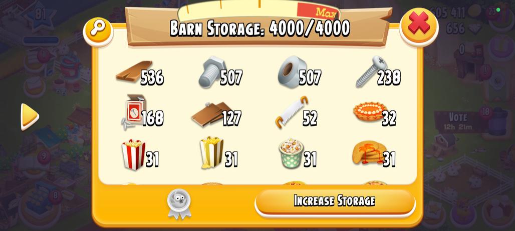 Level 81 | 4000 Barn + 1000 Silo | Fully Loaded Barn | + Coins | 656 Diamonds | Stacked with Tools | Instant Delivery