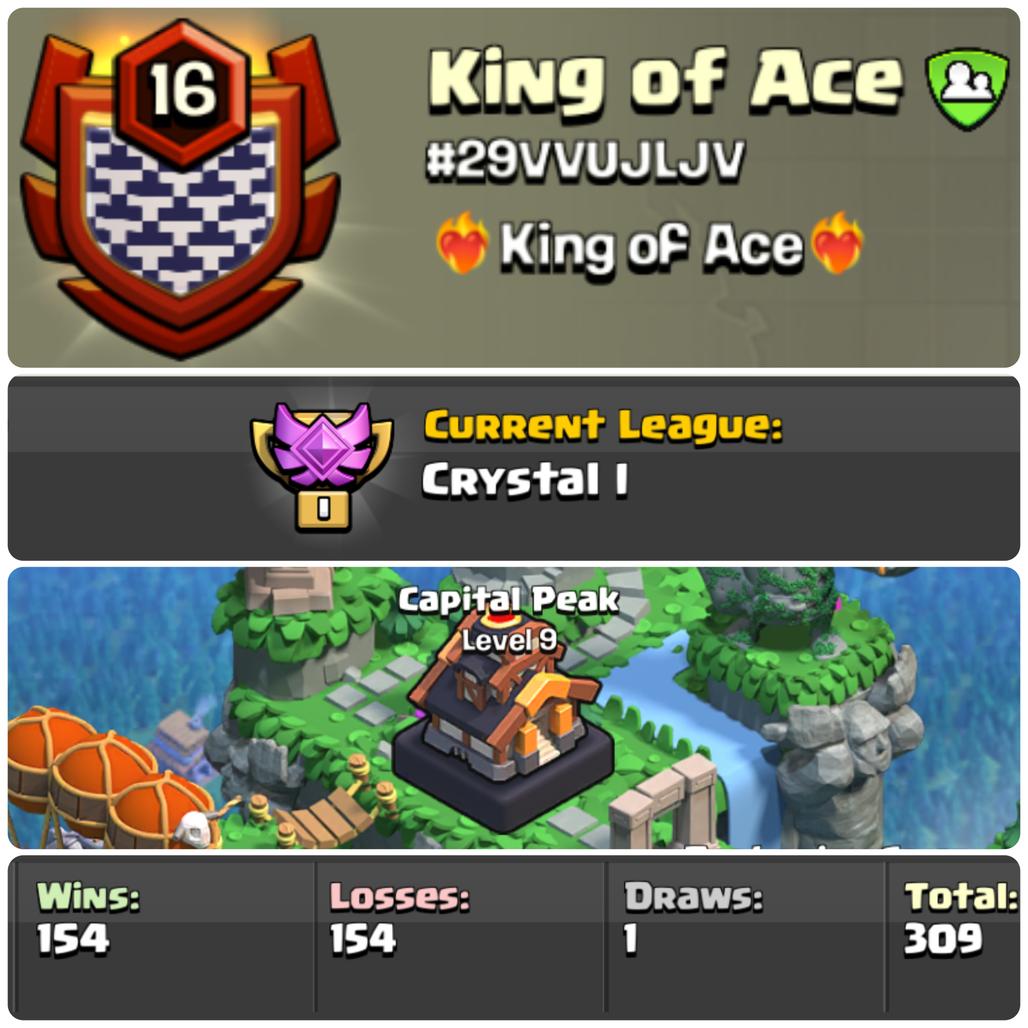 LVL 16 | King of Ace | CRYSTAL 1 | CAPITAL PEAK 9 | WAR WINS 154 LOSSES 154