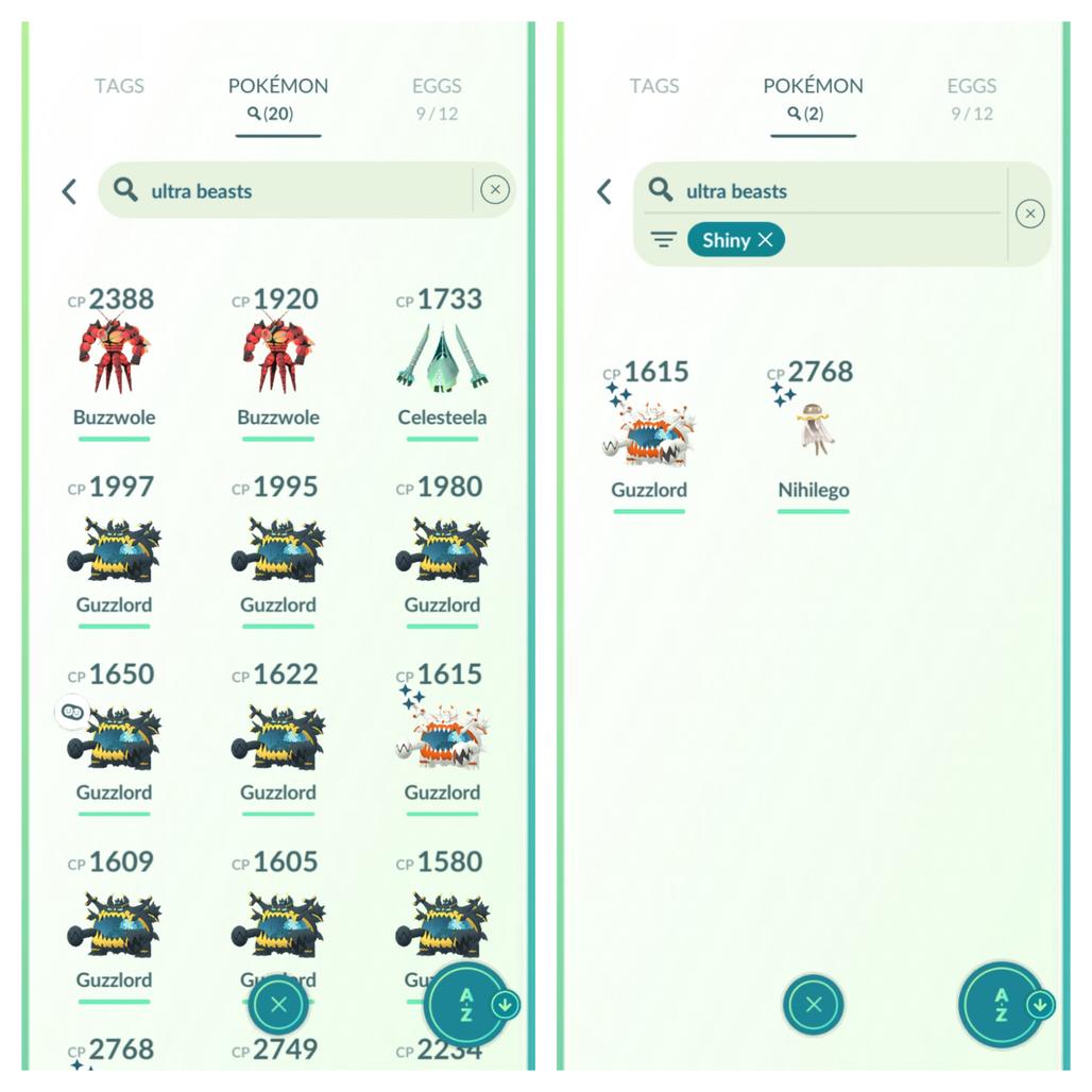 • Ultra beasts Shiny : 3 [Guzzlord (2), Nihilego]