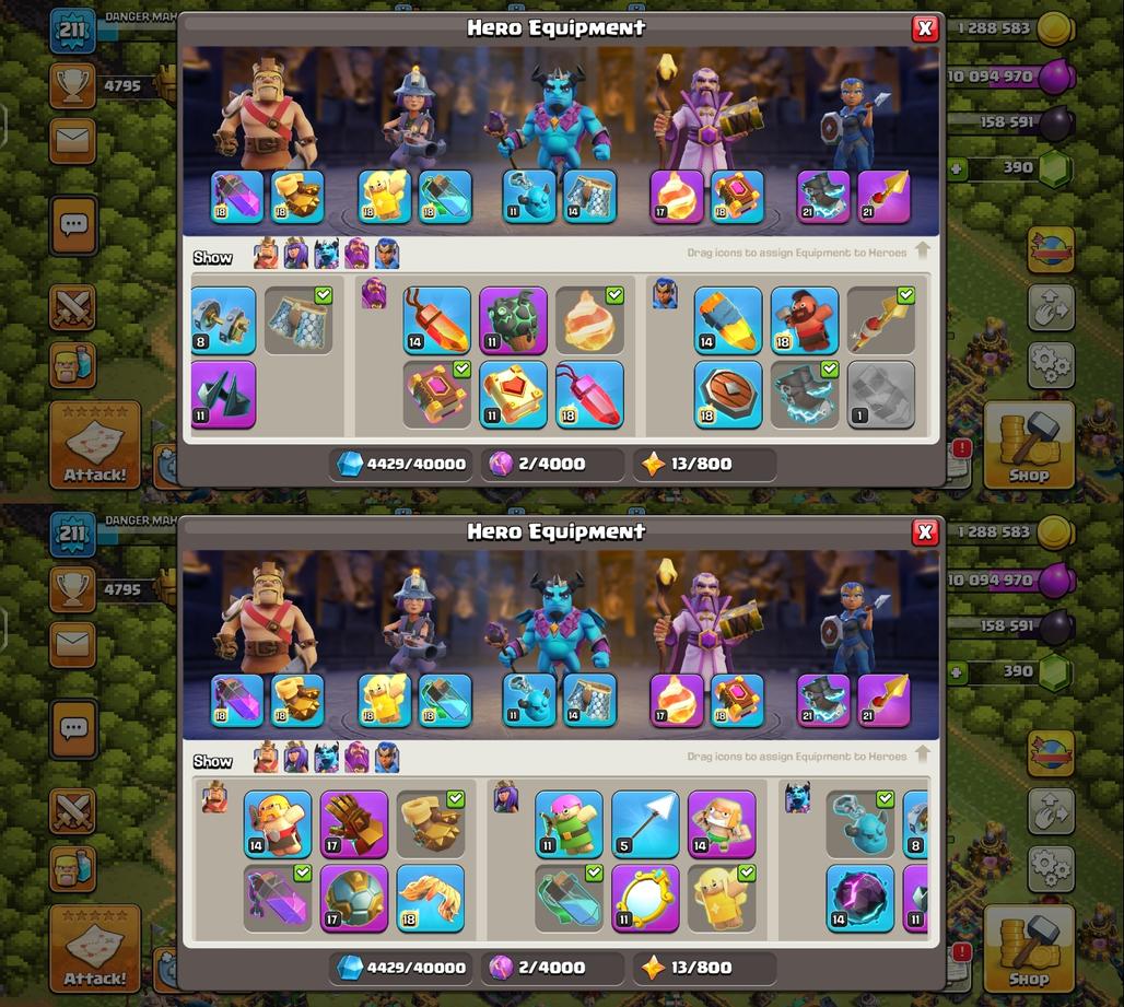 M1850||TH15 Near Maxed||Max Heroes:80-80-59-55-30||9 Equipment Max||9 Epic Equipment||6 Builder||Level:211||Best:5547||