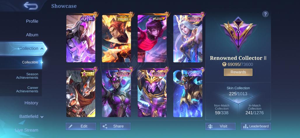 MB858|LV64|HERO 105|SKIN 225|RENOWNED COLLECTOR 2|KARINA KOF|DYRROTH KOF|YUZHONG PRIME|LEOMORD ABYSS|3 LUCKYBOX